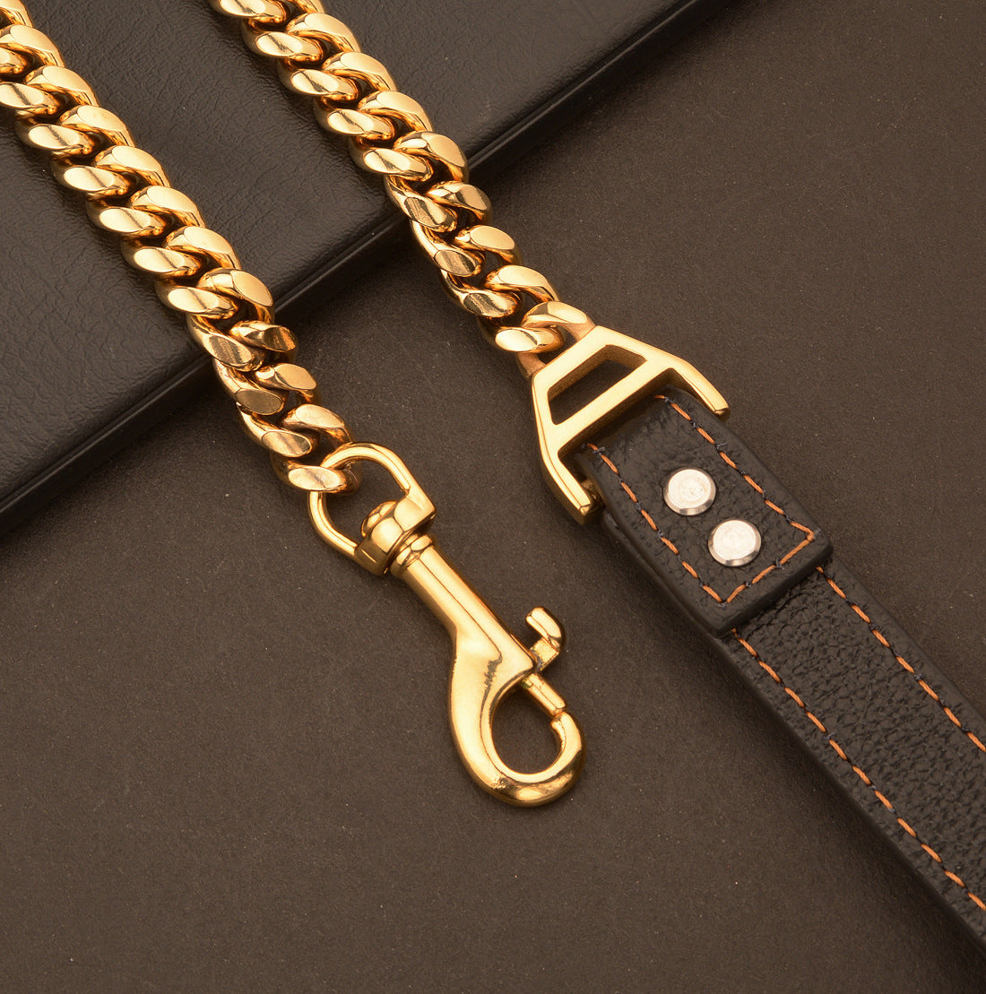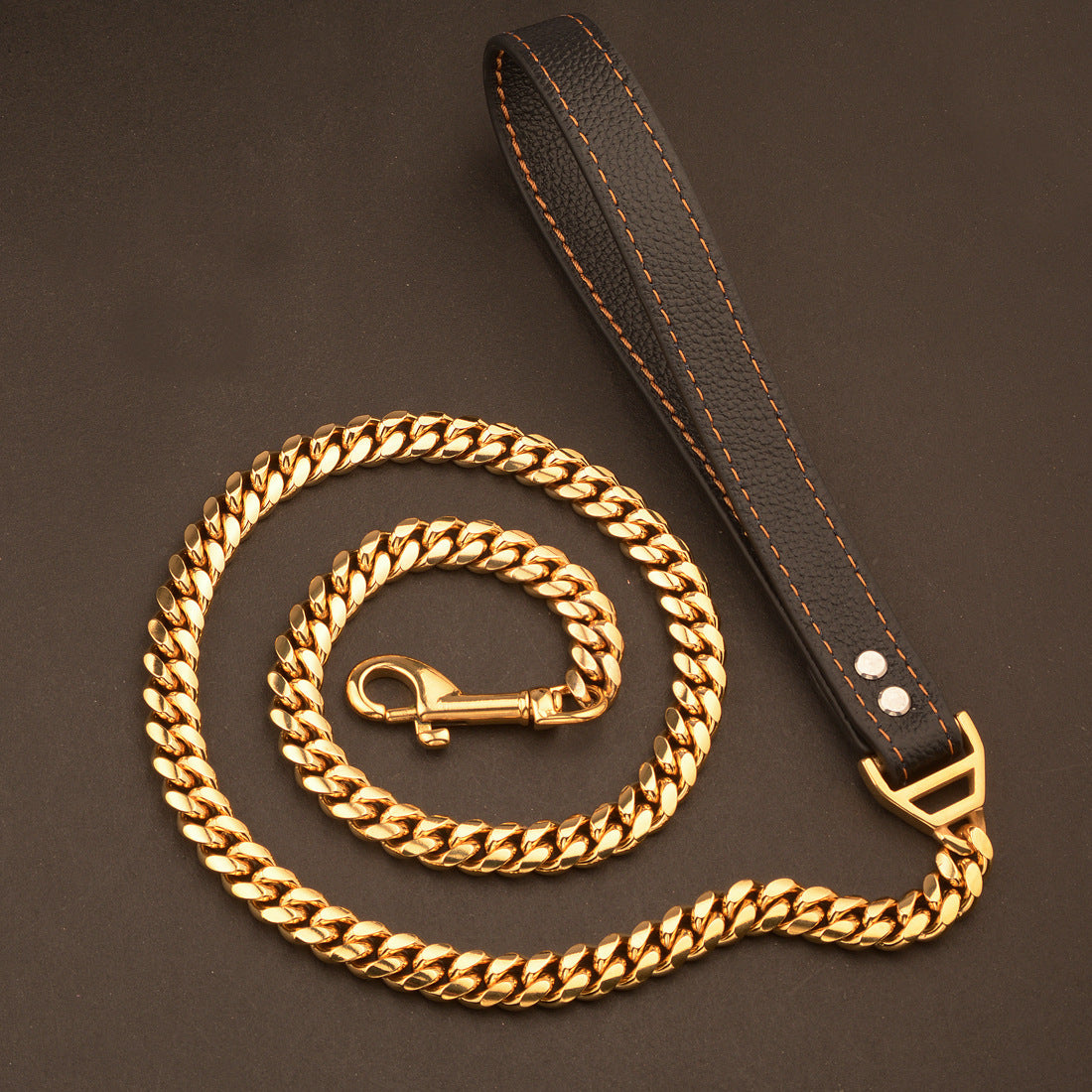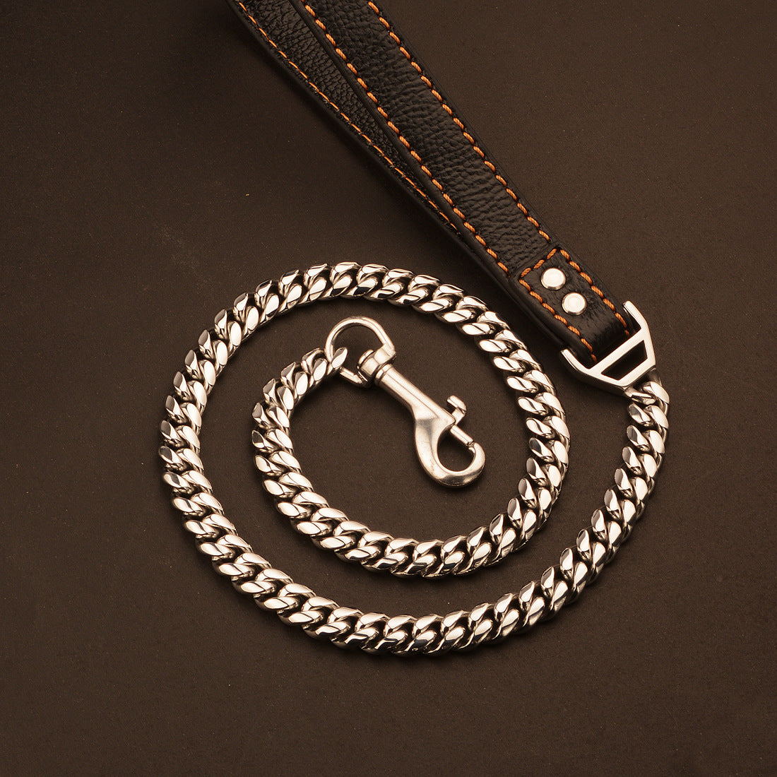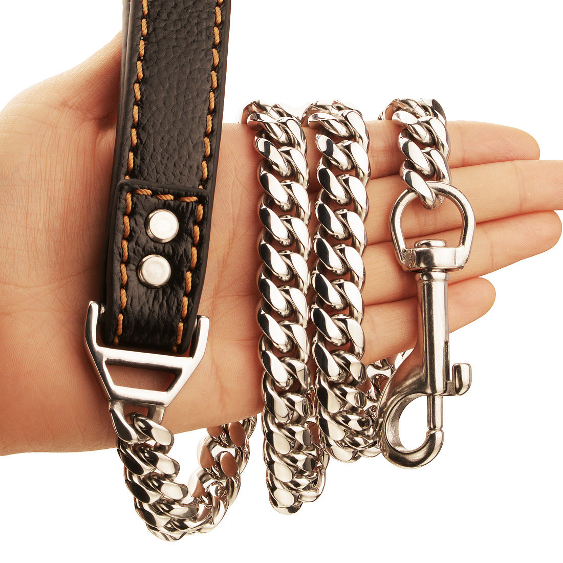 Stainless Steel Cuban Chain Dog Collar – Heavy Duty Training Leash