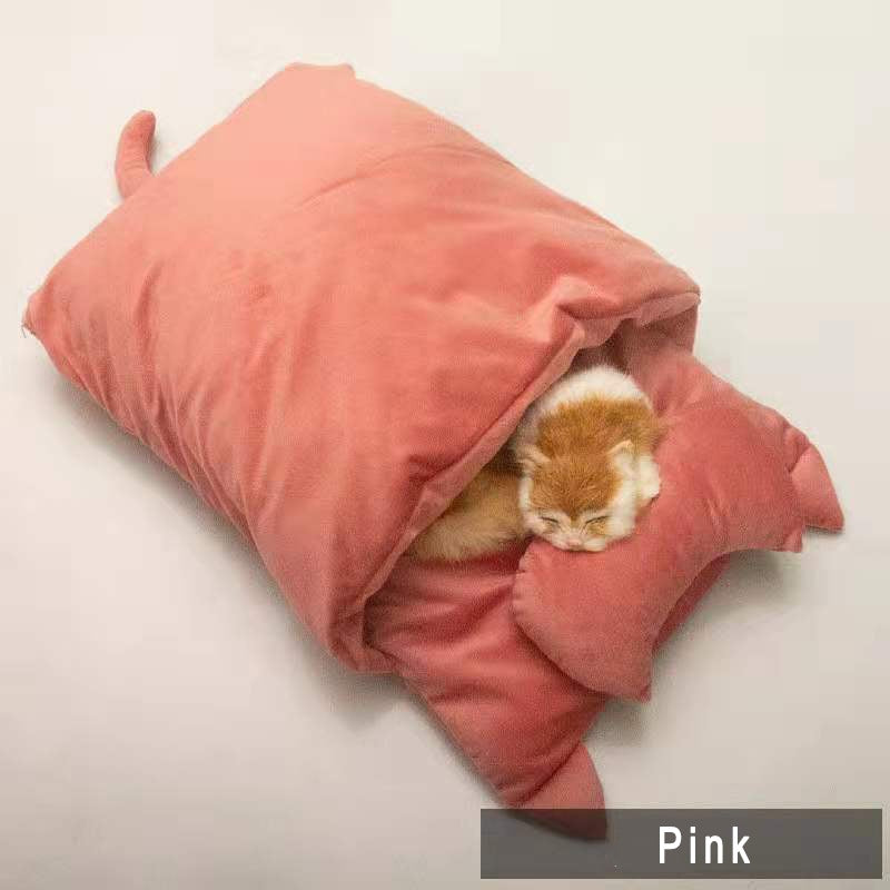 This cat sleeping bag bed is perfect for cold winters, offering a private nest where your furry friend can rest, hide, and stay warm.